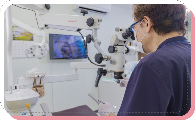 当医院では、マイクロスコープを使用して必要に応じて治療をおこなっています。肉眼の最大20倍、今まで見えなかった根管治療(歯の根の治療)が見えるようになり、より良い治療を提供出来るようになりました。