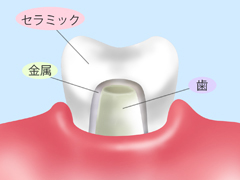 金属のフレームにセラミックを焼きつけたクラウンです。