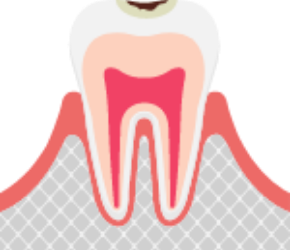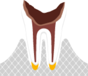 歯冠部分(歯の上の部分)のほとんどが溶けてしまった状態です。歯の神経が死んでしまうといったん痛みが無くなりますが、歯根の先に膿がたまると、ふたたび激しく痛みます。