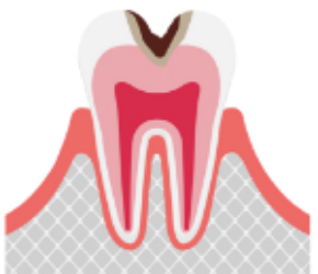 エナメル質の内側の象牙質にまでおよんだむし歯です。冷たい物や甘い物を口にするとしみる、歯が痛むなどの症状が現れます。