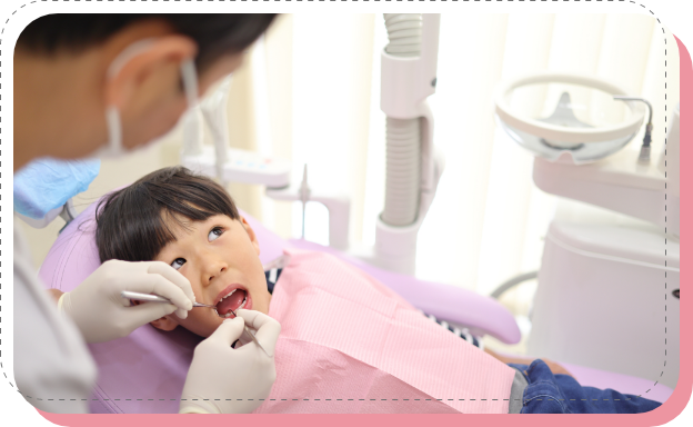 生涯健康な歯を維持するためには、小さなころからお口のケアの習慣を身につけることが大切です。毎日の歯みがきなどのセルフケアとともに、定期的な歯科医院でのプロフェッショナルケアがお口のトラブル予防に有効ですので、歯が生えはじめたら、一度お子さまと一緒にご来院ください。
