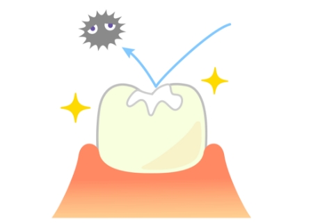 歯質を強化するはたらきが期待できるフッ素を歯の表面に塗布します。むし歯の出す「酸」への抵抗力が高まり、歯の再石灰化も促します。むし歯予防のためには定期的なフッ素塗布がおすすめです。