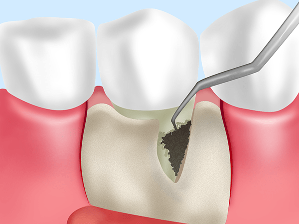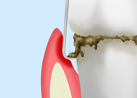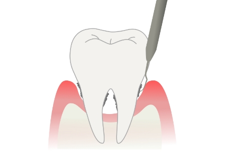 局所麻酔を行ったうえで、歯周ポケットの奥深くに入り込んだプラークや歯石、感染歯肉の組織を除去します。