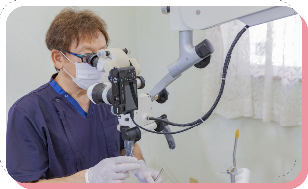 そのために当院では、感染部位の取り残しや、歯の削り過ぎがないようにマイクロスコープを使用して治療を行っています。